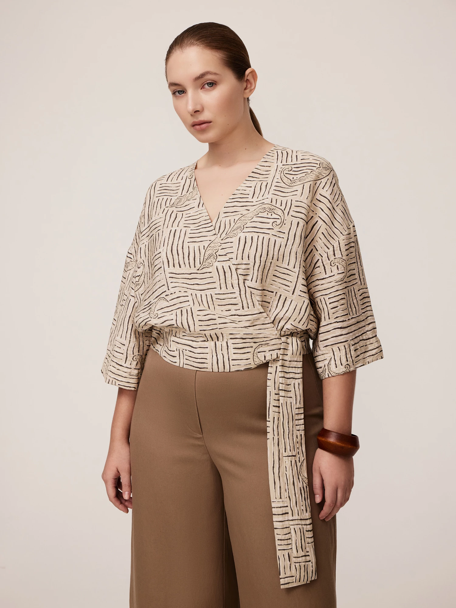 Юбка, подчеркивающая достоинства фигуры, из ткани, где строгие линии оживают благодаря растительным мотивам. Такой рисунок не выглядит холодным или строгим, он делает образ динамичным благодаря балансу между современной лаконичностью и теплой естественностью. Созданная из высококачественной турецкой вискозы, усиленной полиамидом, юбка дарит коже ощущение свежести даже в самый жаркий день — ткань прекрасно пропускает воздух, впитывает влагу и мягко струится по фигуре, создавая эффект невесомой элегантности. Практичный полиамид сохраняет безупречный вид изделия — оно меньше мнётся, быстро сохнет после стирки и устойчиво к деформации, позволяя Вам всегда выглядеть безупречно без лишних усилий. Прилегающий крой повторяет естественные изгибы фигуры, а имитация запаха, формирующаяся наложением полотнищ с фиксацией по верхней части изделия, создает эффектный разрез по диагонали. Такой прием позволяет подарить силуэту дополнительную вертикаль, делая его еще более стройным. Застежка - потайная молния в левом боковом шве – не отвлекает внимание от эффектного рисунка на ткани и основной диагонали. Смелая и в то же время женственная юбка станет идеальным спутником как для городских прогулок, так и для особых случаев, идеально сочетаясь с блузой BL1585.