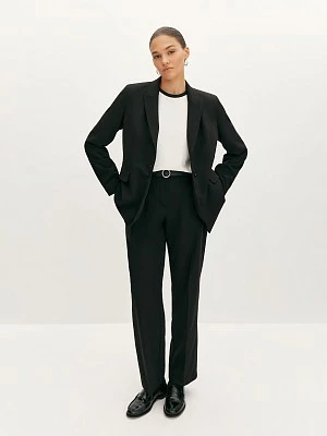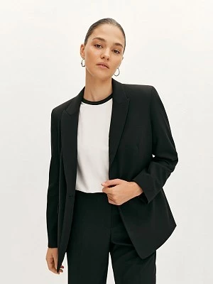 Однобортный жакет классического чёрного цвета выполнен из плотной костюмной поливискозы. Высококачественный материал прост в уходе и надолго сохраняет первозданный внешний вид. Лёгкая подкладка приятна к коже. Модель полуприлегающего силуэта с длинным втачным рукавом со шлицей с пуговицами, отложным воротником с заострёнными лацканами, карманами с клапанами и моделирующими вытачками. Для создания однотонного образа наши дизайнеры советуют сочетать жакет с брюками или юбкой из той же коллекции.