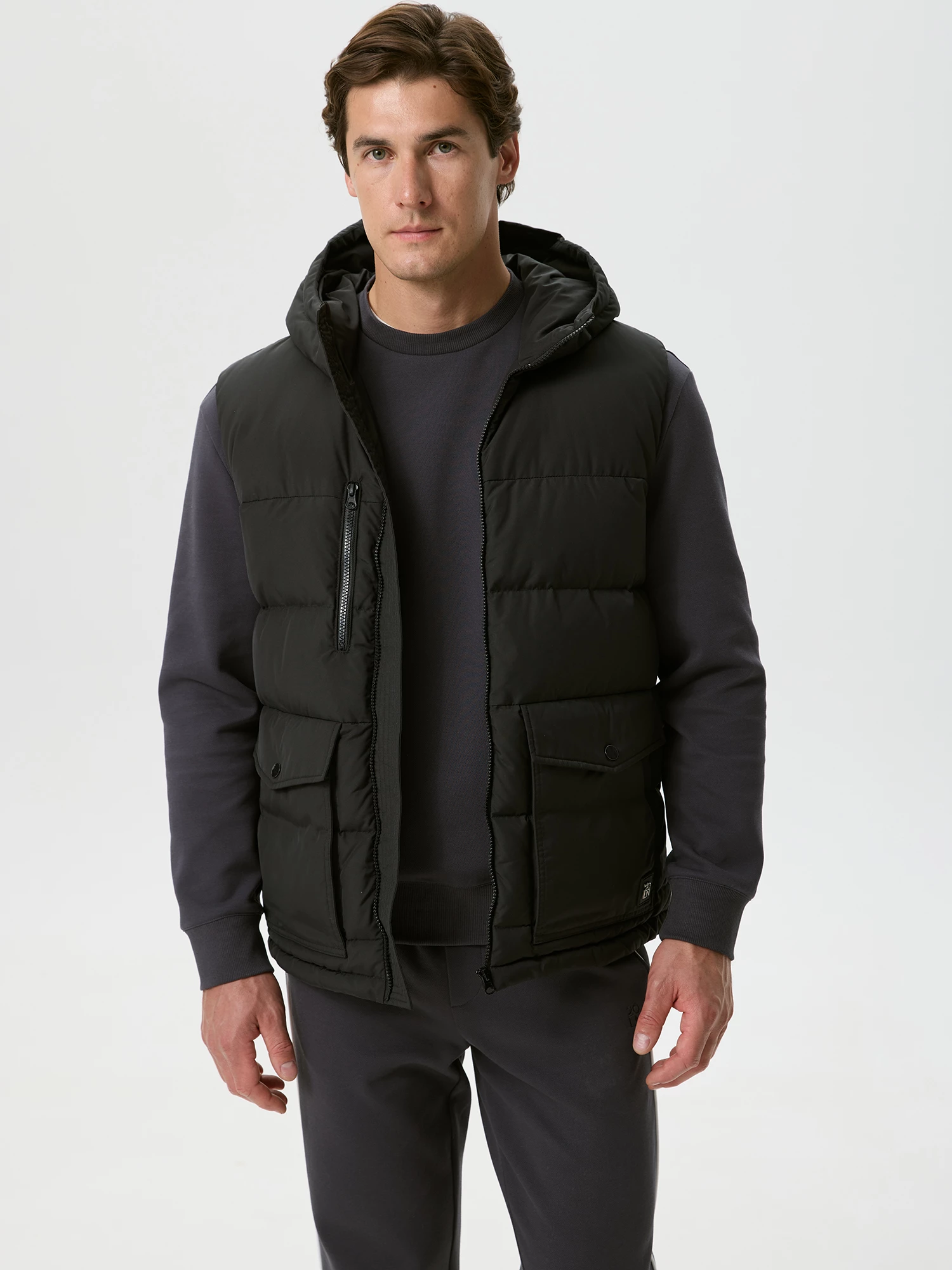 Теплый жилет-безрукавка на молнии, из плащевой ткани с влагозащитной пропиткой, подходит для осени и мягкой зимы. Качественный наполнитель из пуха и пера делает модную модель очень теплой и ультралегкой. Наполнитель равномерно распределен внутри куртки благодаря упаковке из пуходержащей ткани. У модели двойная ветрозащитная подкладка для исключения проявления пуха. Высокая стойка, удобный капюшон, корд-система с фиксаторами по низу, функциональные карманы с клапанами и боковым входом, ветрозащитный внутренний клапан и дополнительная подкладка на спине защитят от непогоды . Короткий жилет в молодежном стиле с удобным дополнительным нагрудным карманом на молнии и закругленным низом необходим в гардеробе. Базовый черный универсален. Индекс Fill Power 630-650 - это показатель натуральных наполнителей премиум-класса.